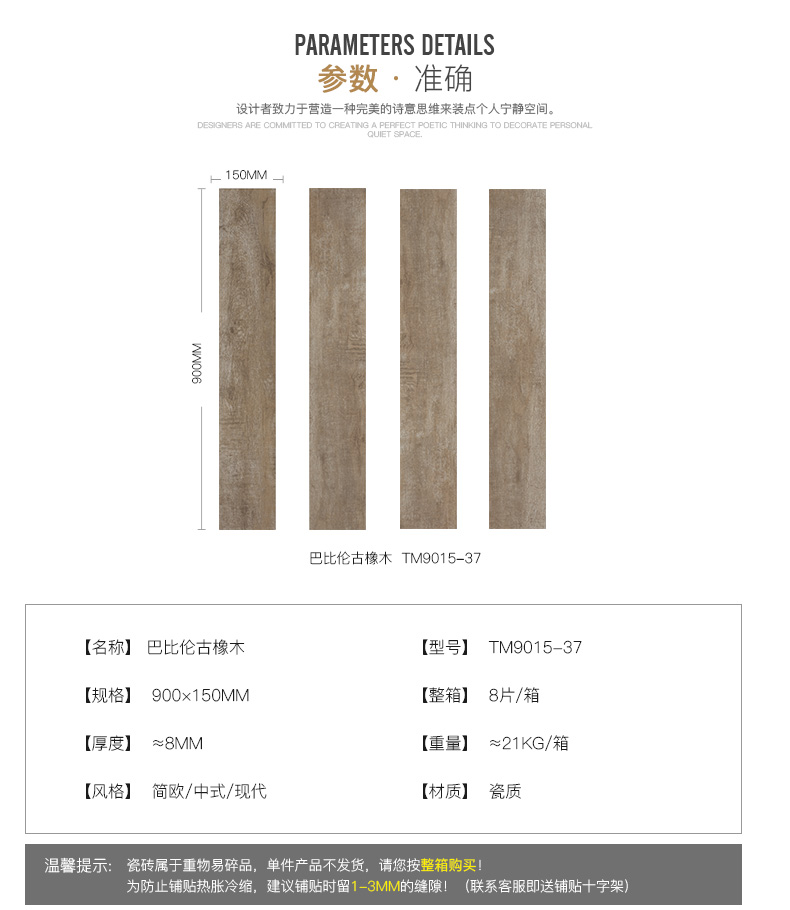 商品名称:鹰牌 木纹砖150*900(巴比伦古橡木)