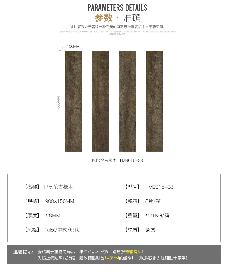 商品名称:鹰牌 木纹砖150*900(巴比伦古橡木)