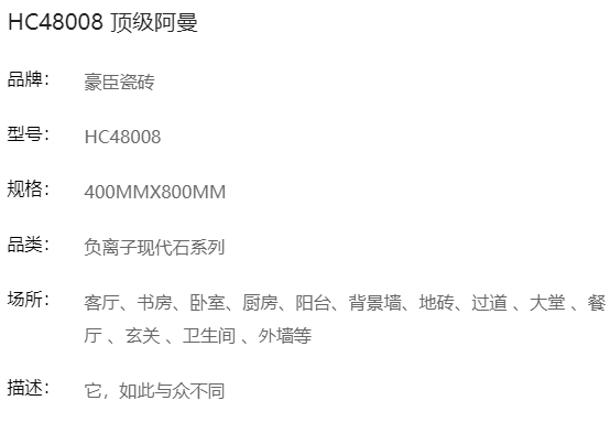 商品名称:豪臣负离子瓷砖 400*800 顶级阿曼