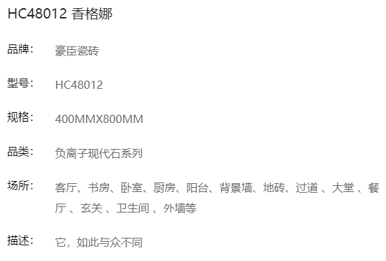 商品名称:豪臣负离子瓷砖 400*800 香格娜