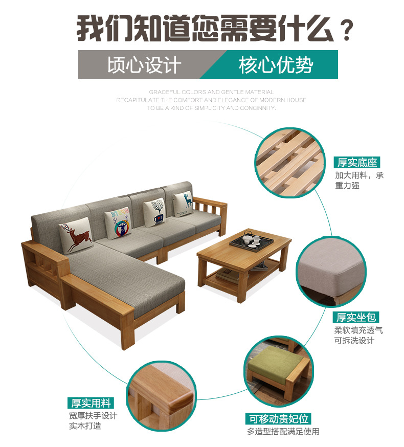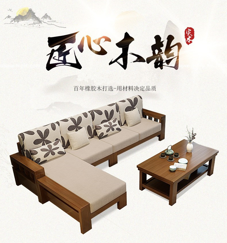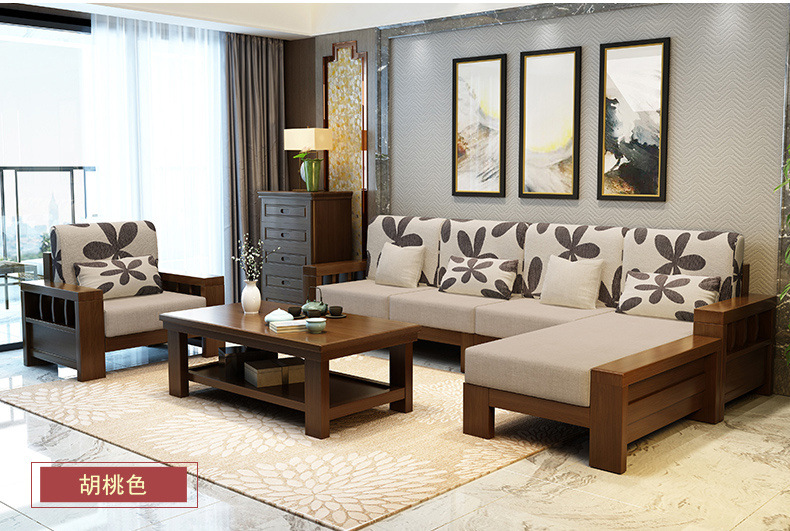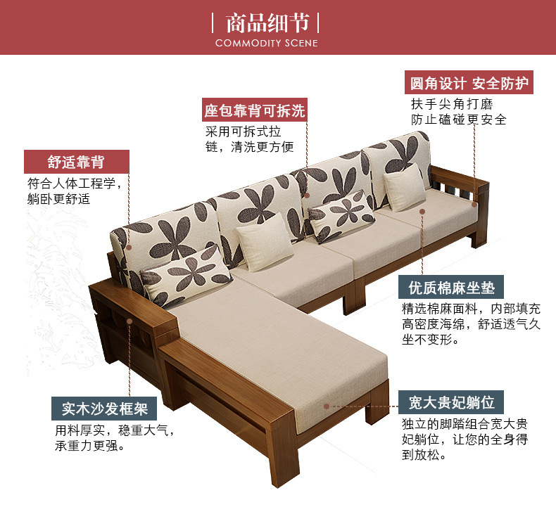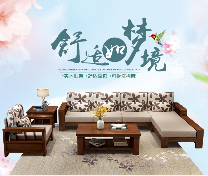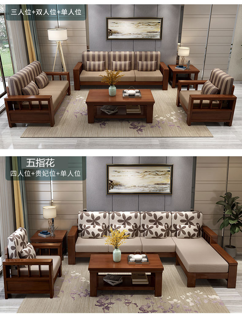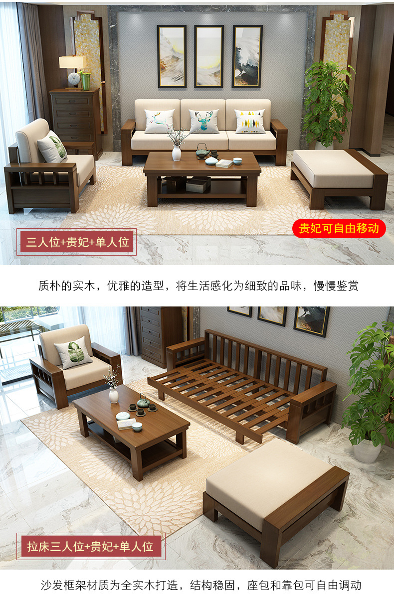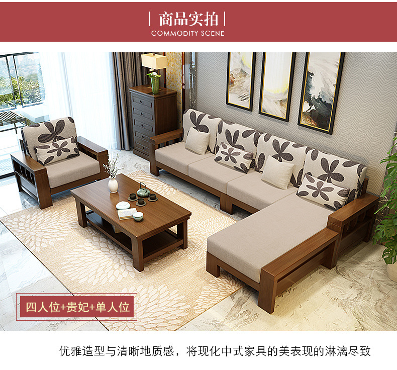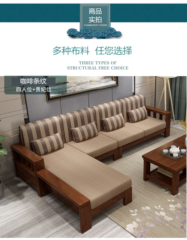 商品名称:盛世东方实木沙发客厅整装新中式家具现代小户型贵妃拆洗布艺沙发组合