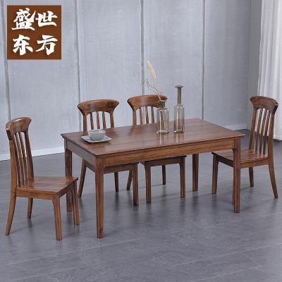商品名称:盛世东方实木原木餐桌椅组合柚木现代中式风格家具简约圆角家用餐桌