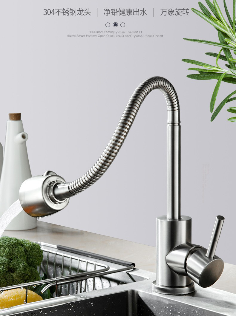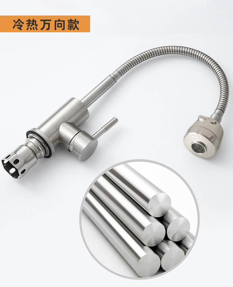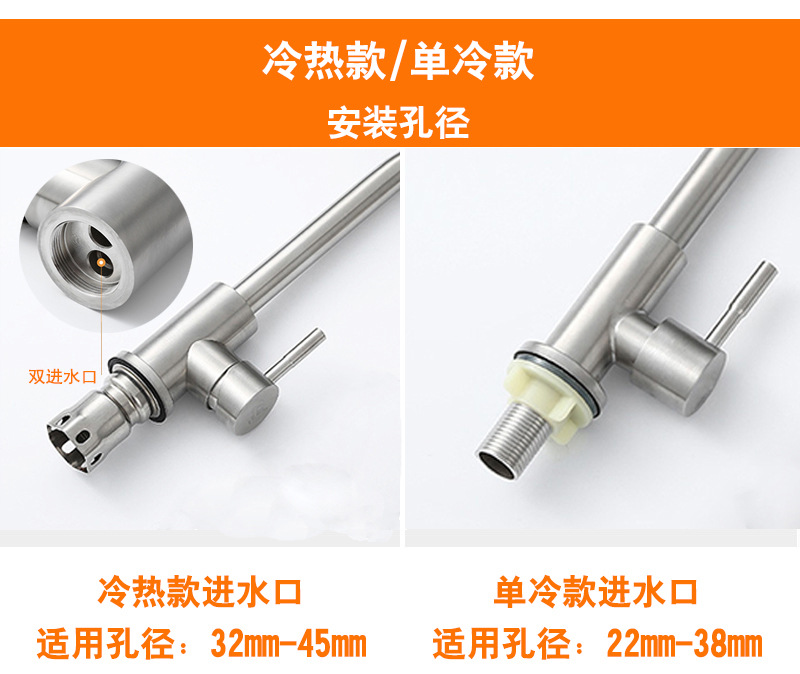 商品名称:厨房304不锈钢万向冷热水龙头菜盆水槽单孔混水单冷旋转防溅龙头
