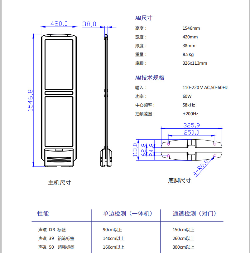 商品名称:eas超市防盗门 服装店防盗天线 声磁58KHZ报警安检门禁