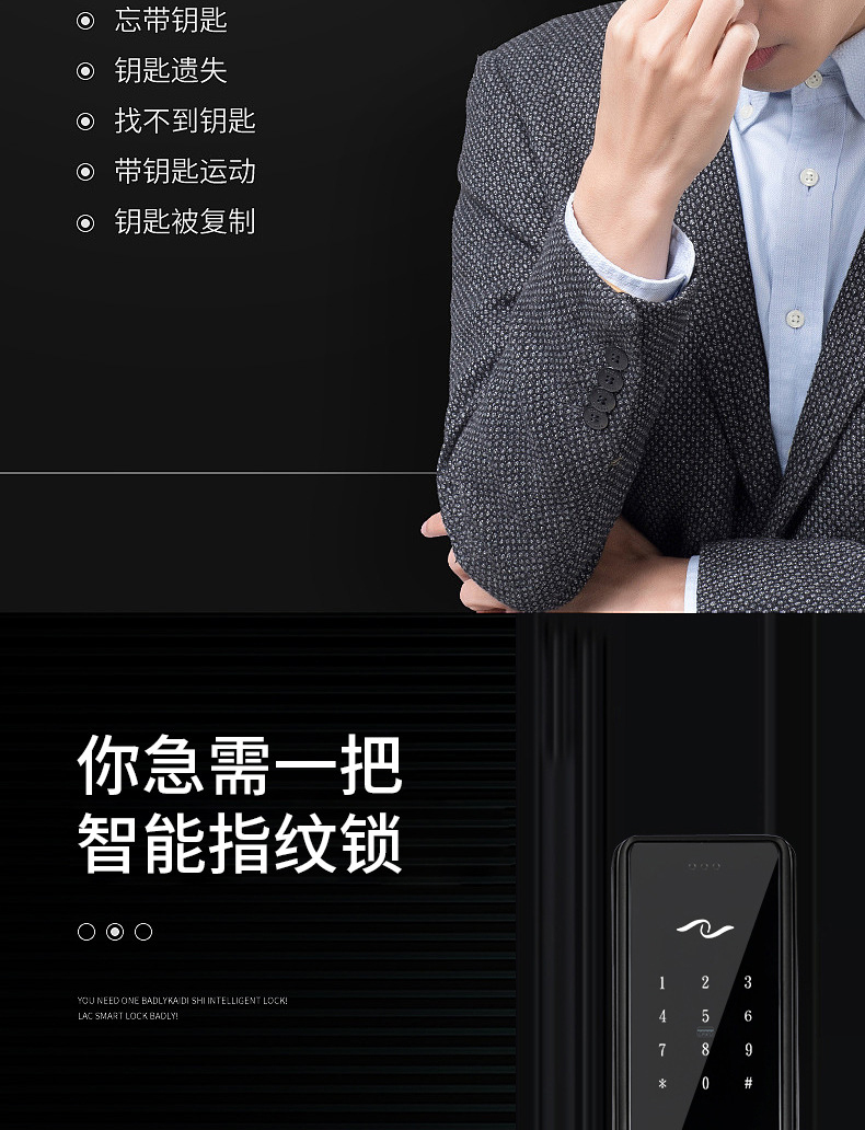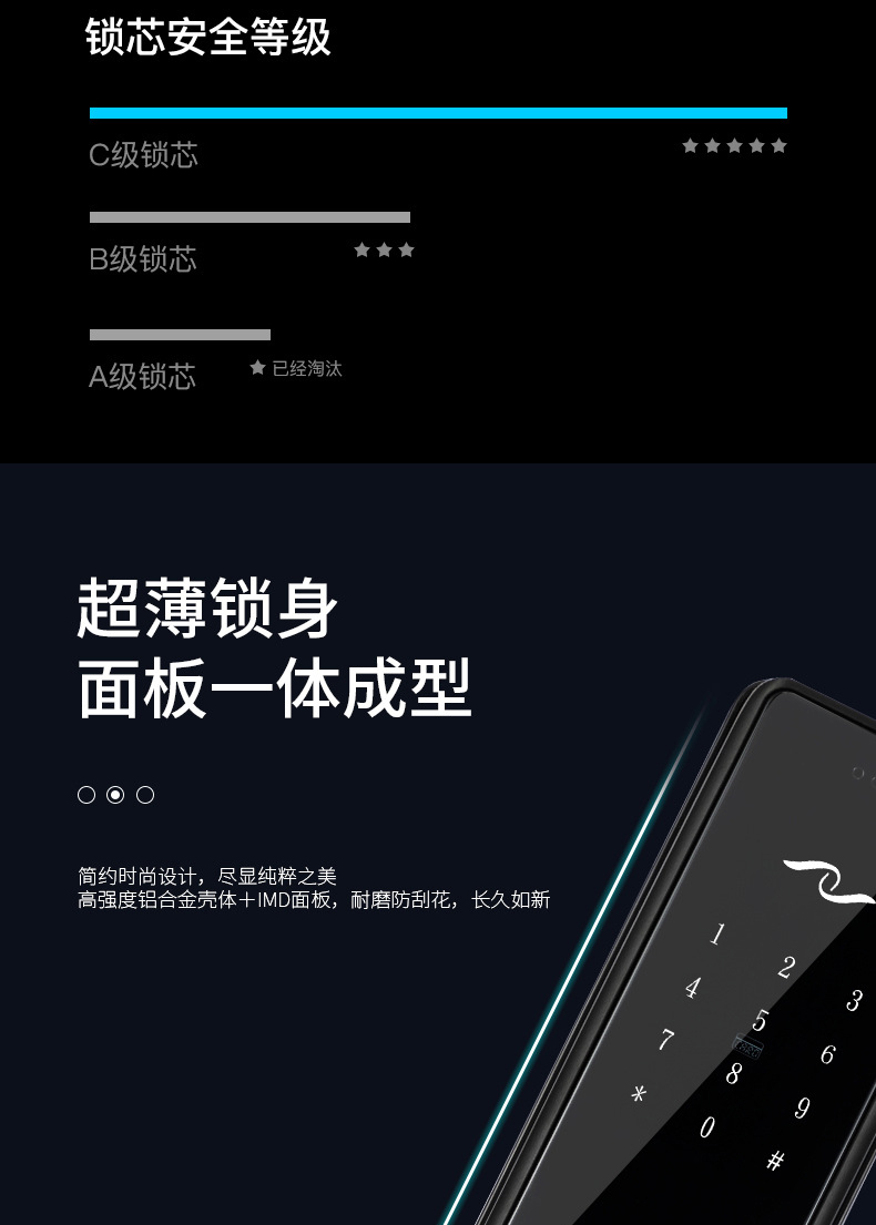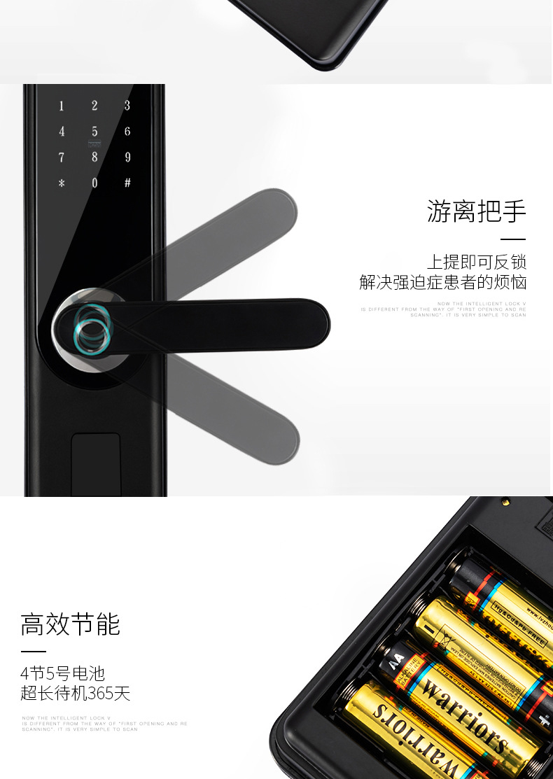 商品名称:指纹锁家用智能锁C级锁芯防盗门通用密码锁公寓出租屋刷卡电子锁