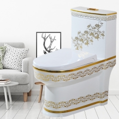 欧式马桶彩金超旋冲洗坐便器金色彩色马桶节水彩花新款座便器
