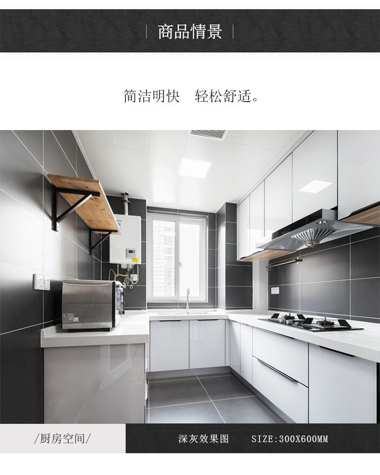 厨房卫生间瓷砖地砖300x600北欧简约现代墙砖灰色墙砖