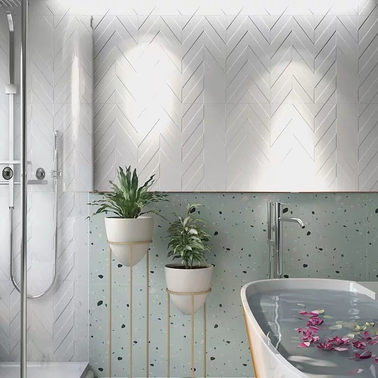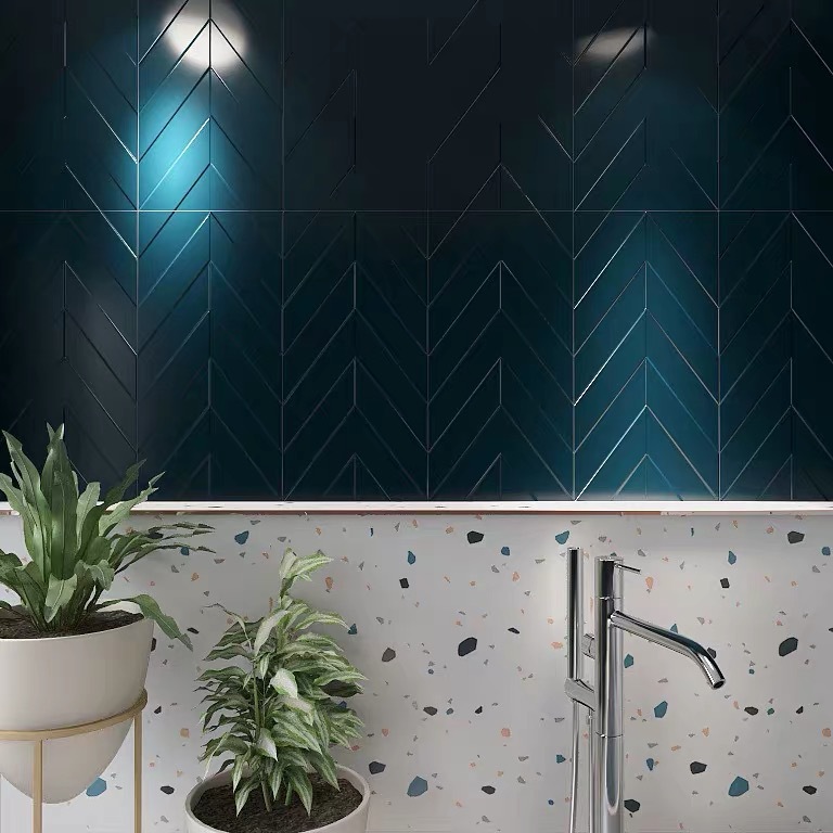 轻奢卫生间瓷砖 凹凸墨绿色鱼骨纹仿古砖 300x600浴室背景墙砖