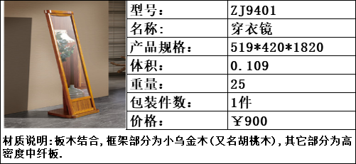 纯典 中式风格 北美进口胡桃木 穿衣镜
