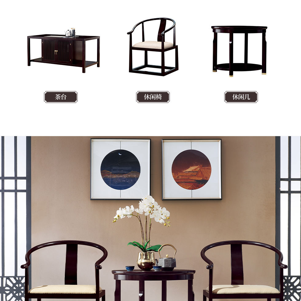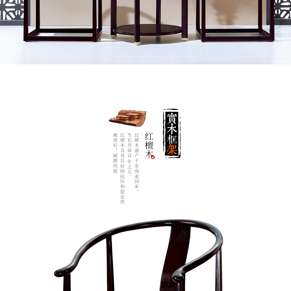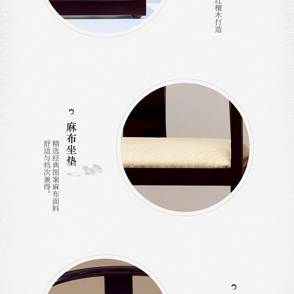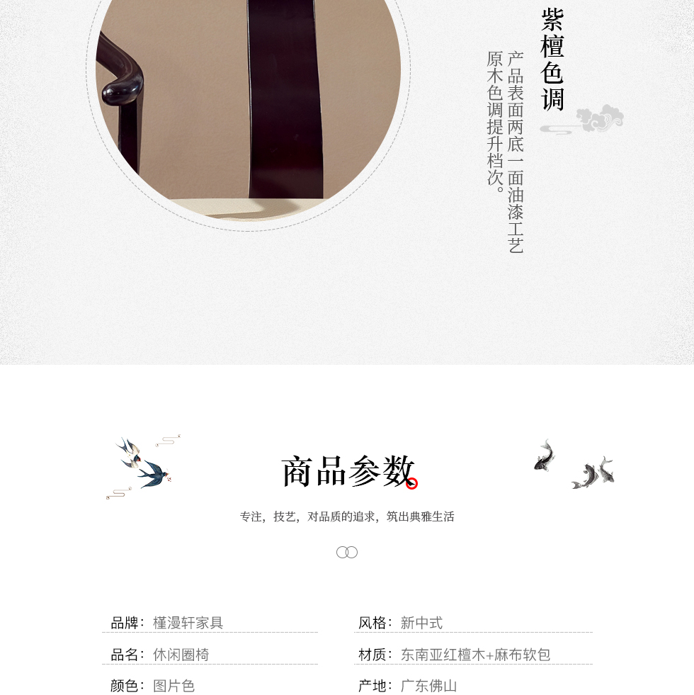槿漫轩家具 休闲圈椅 新中式 东南亚红檀木+麻布软包