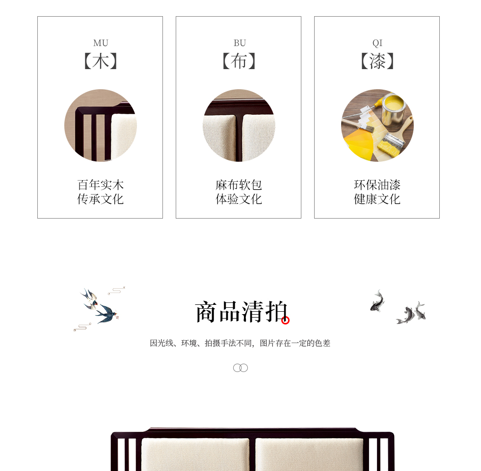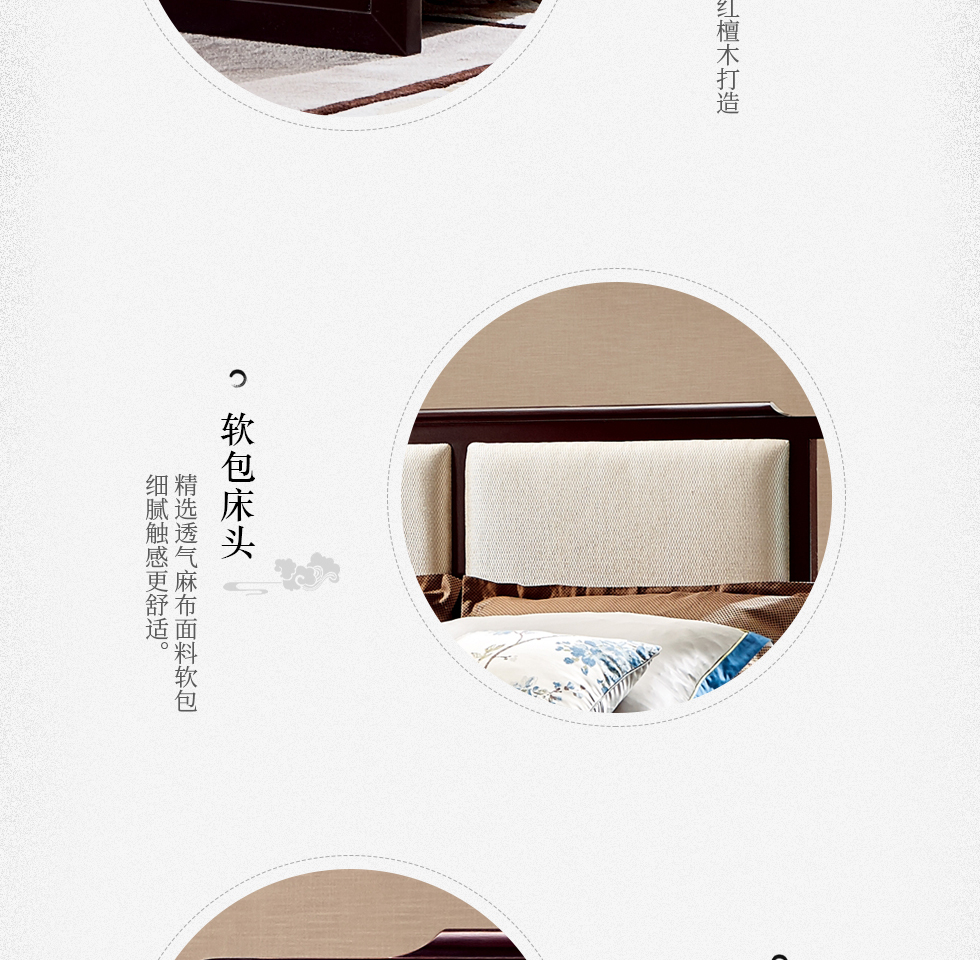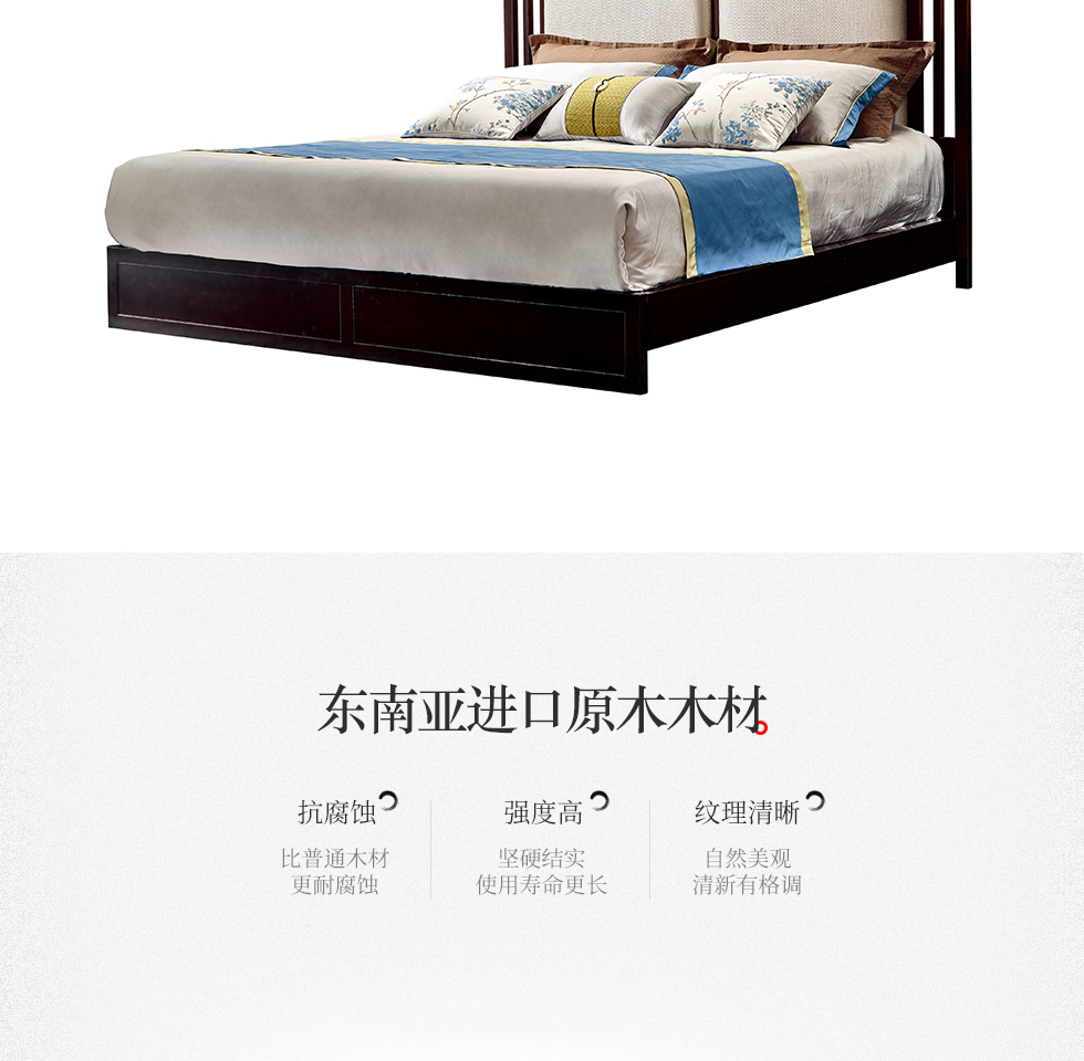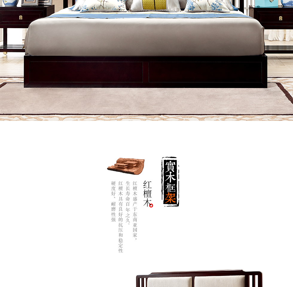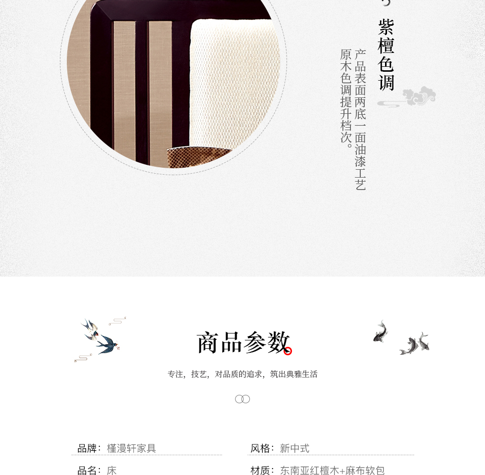 槿漫轩家具 1.8/1.5m床 新中式 东南亚红檀木+麻布软包