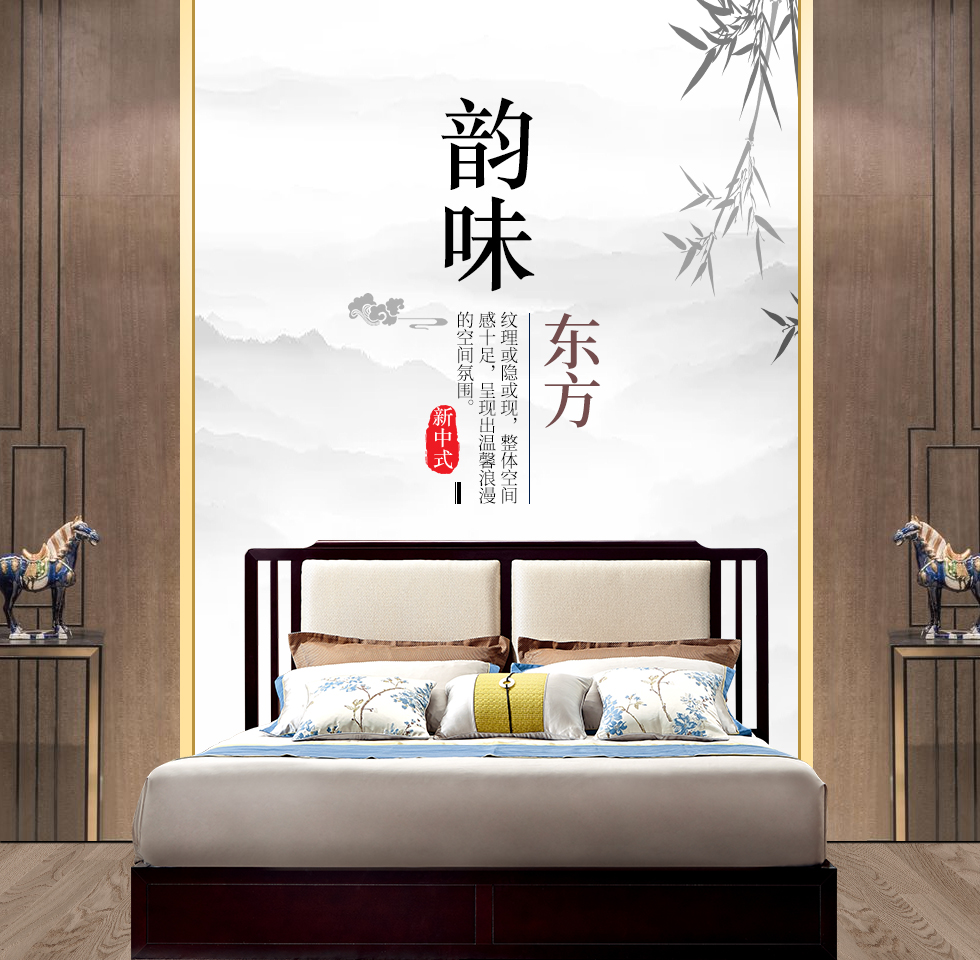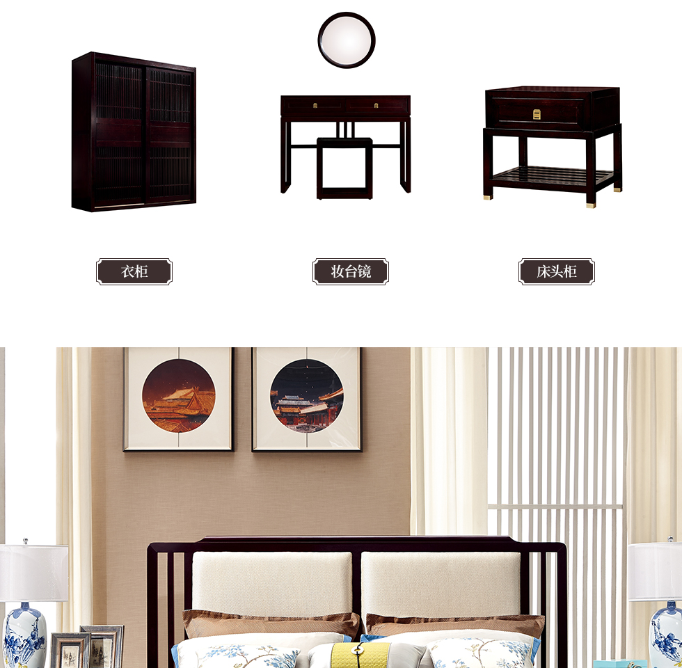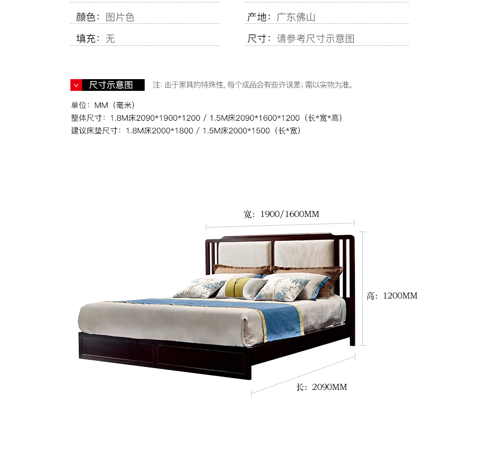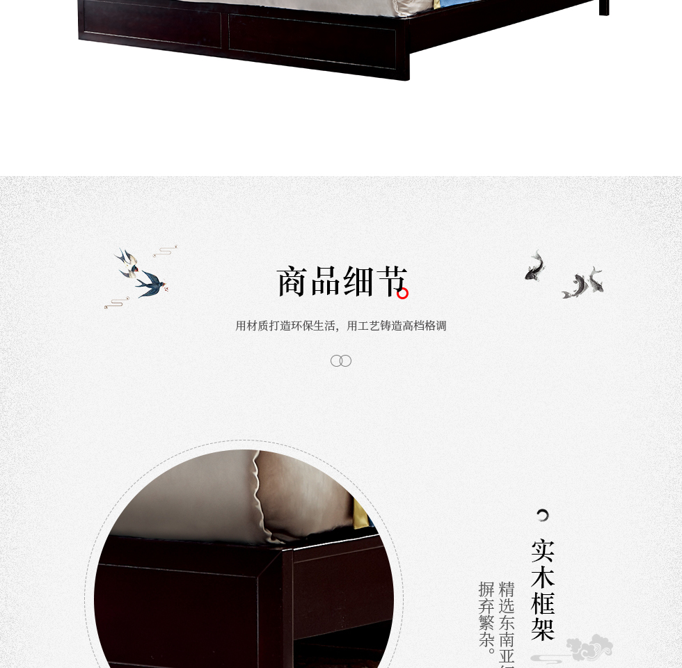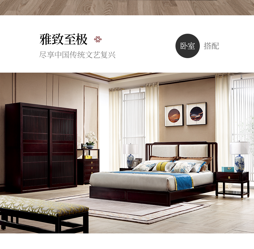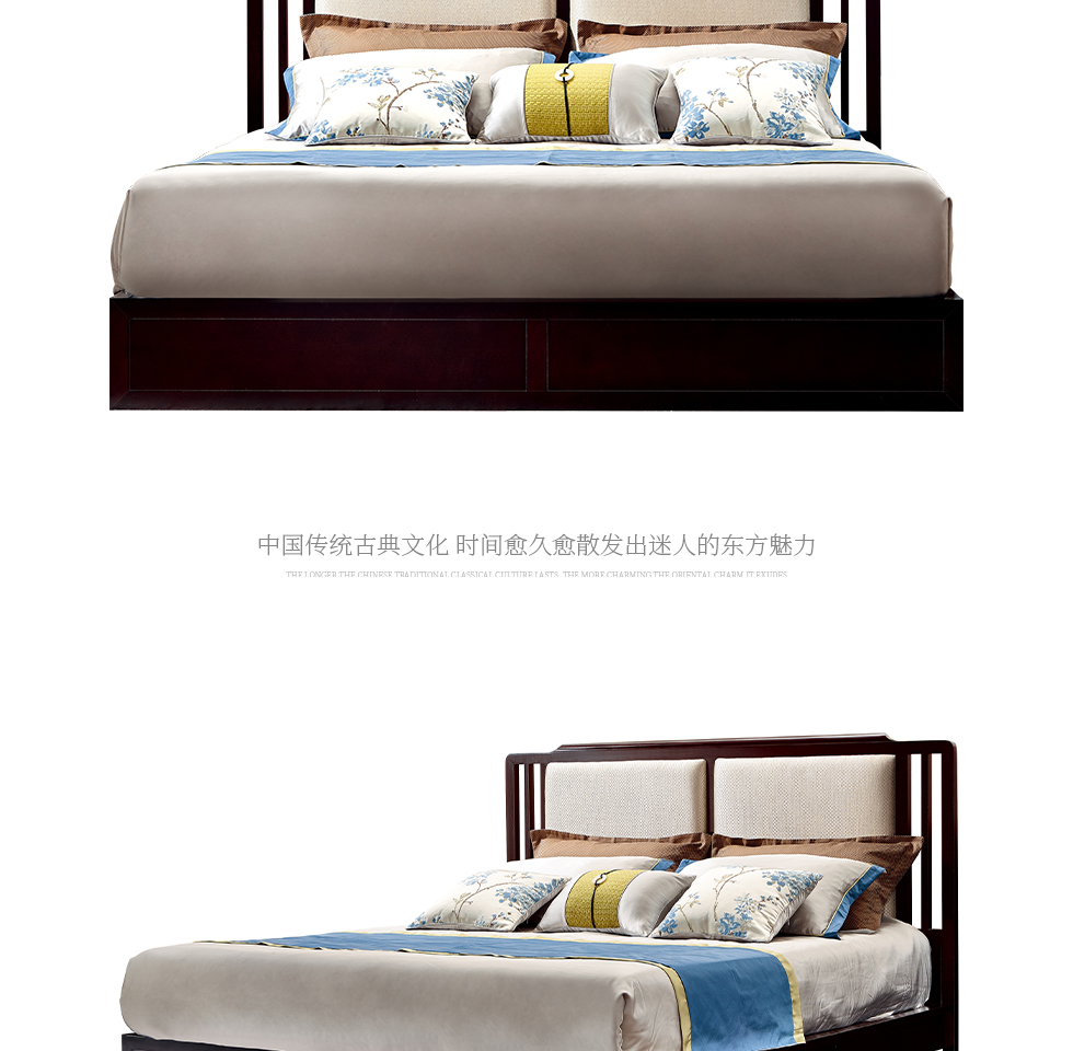 槿漫轩家具 1.8/1.5m床 新中式 东南亚红檀木+麻布软包