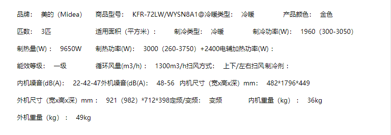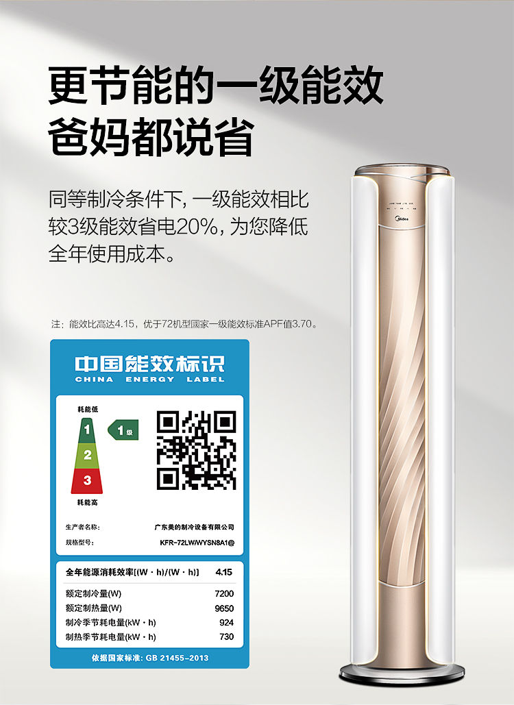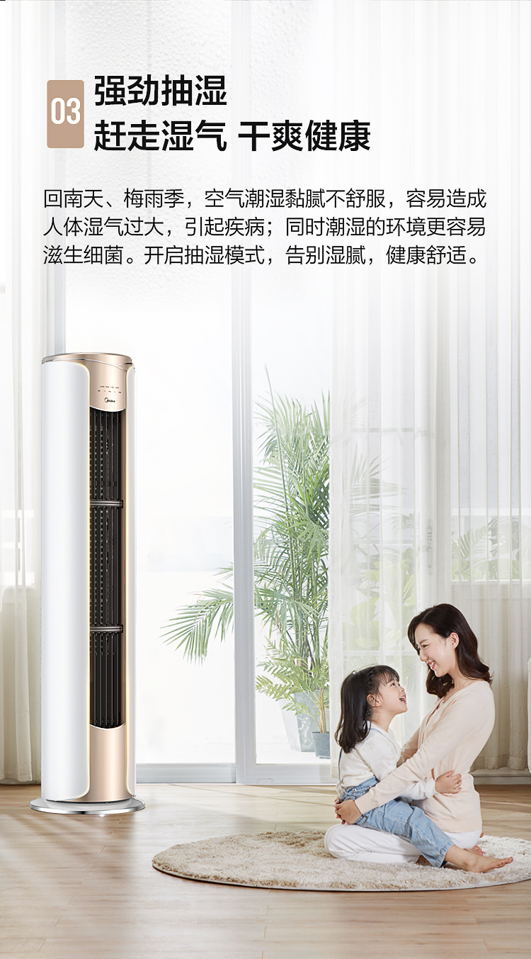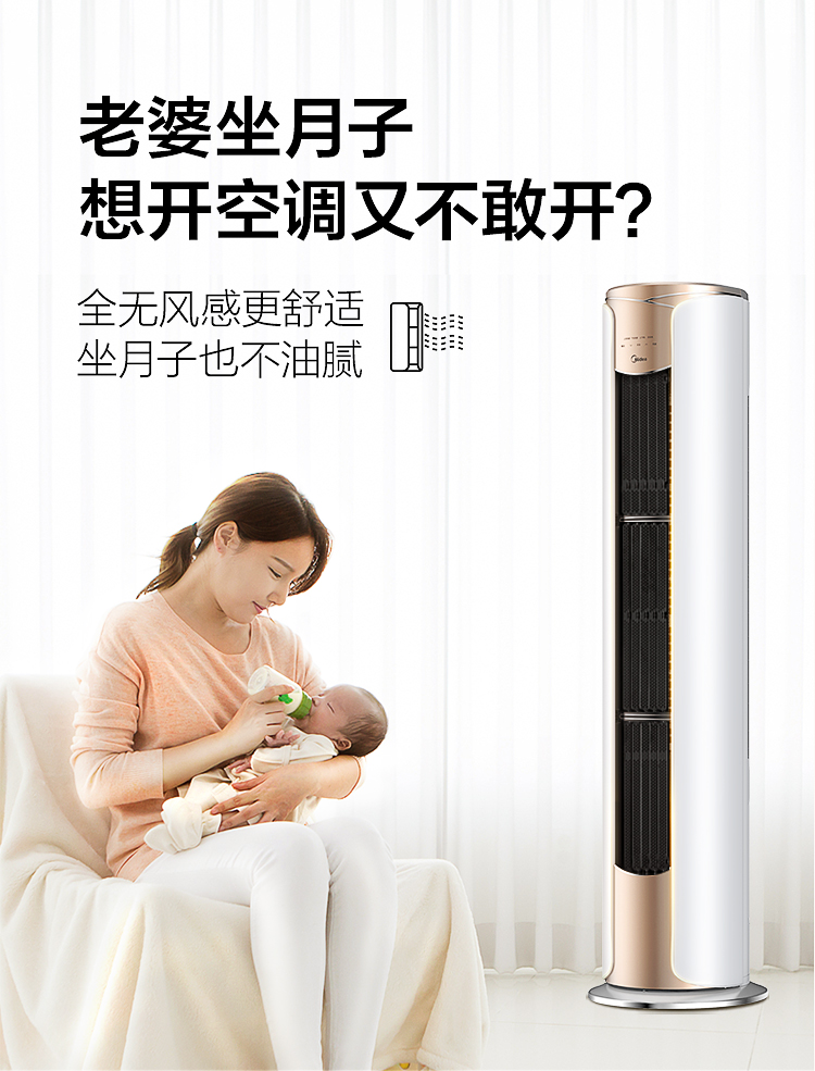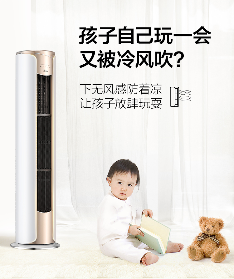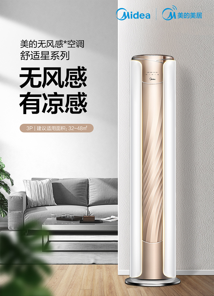 美的空调(Midea) 3匹无风感 一级能效 舒适星 变频冷暖智能WiFi客厅圆柱空调立式柜机臻品空调