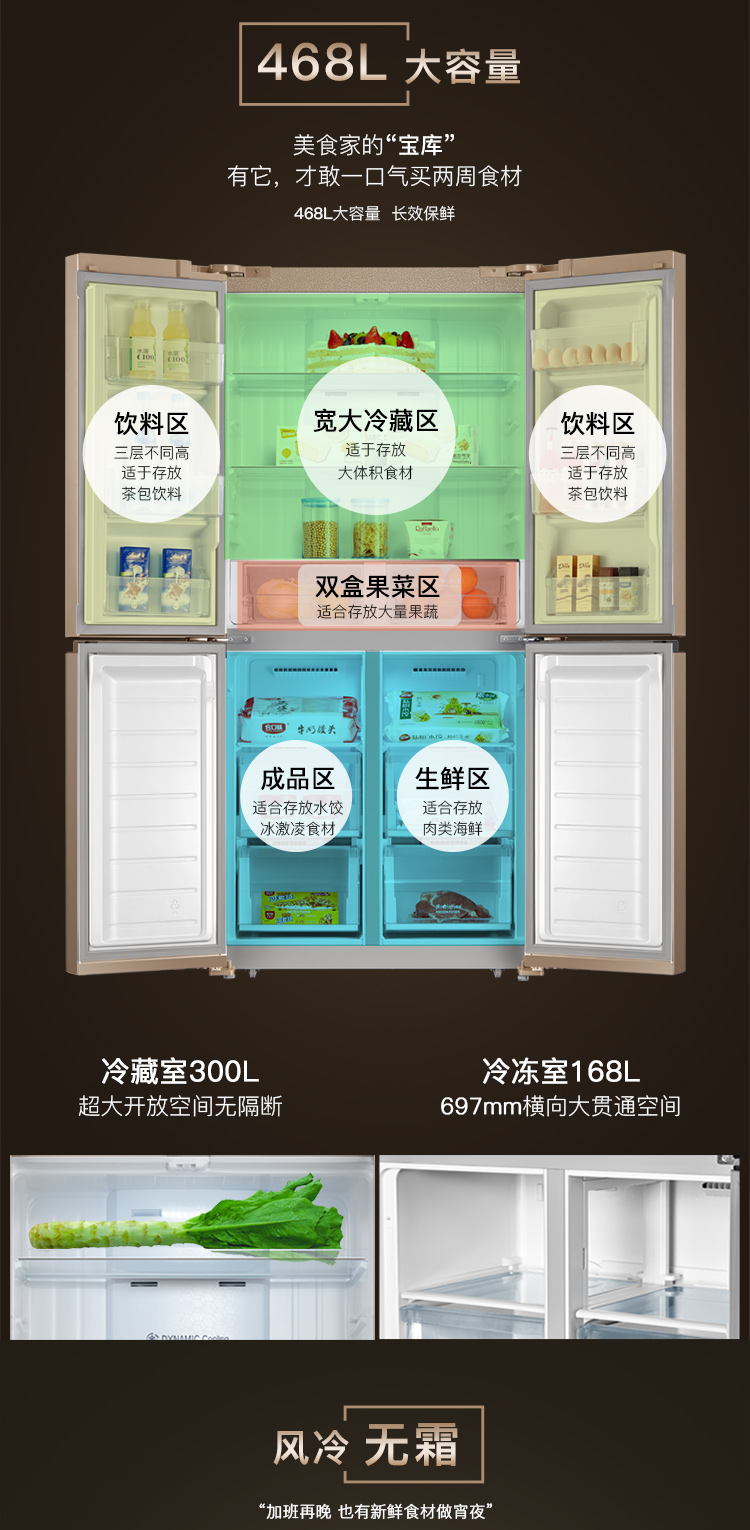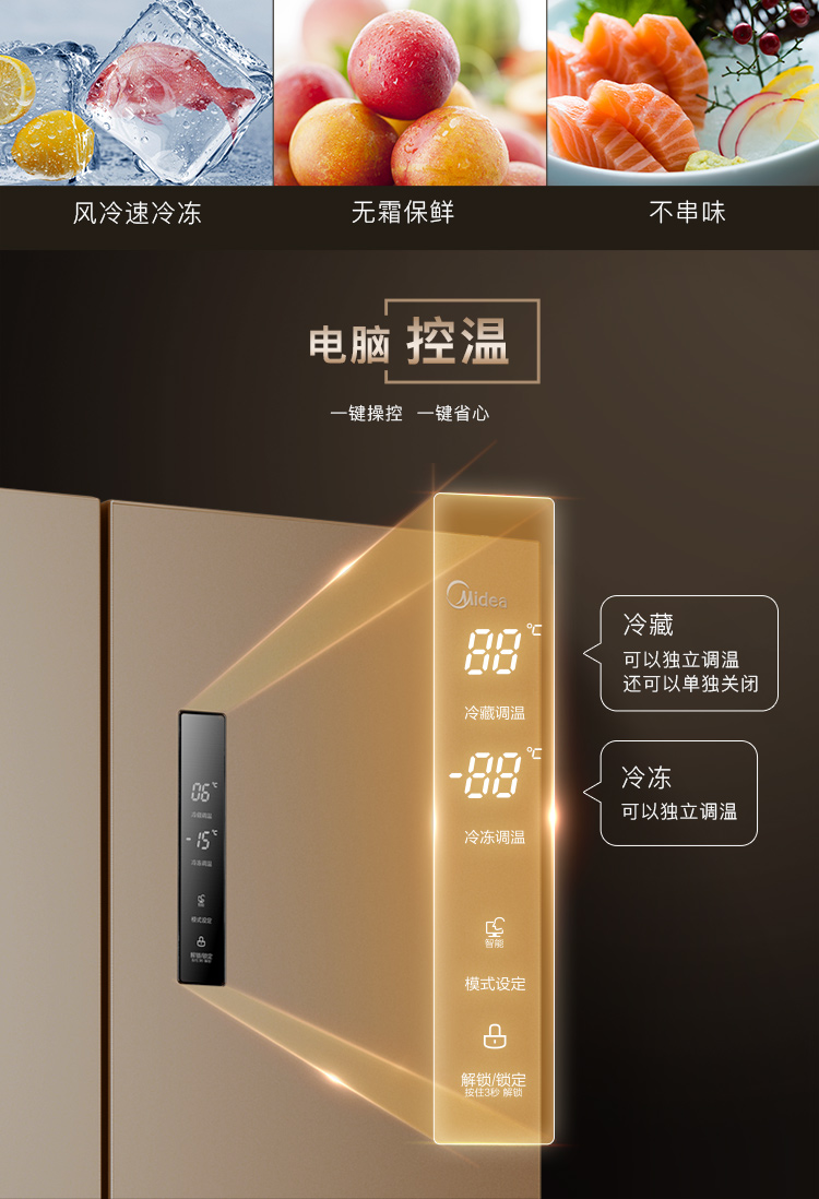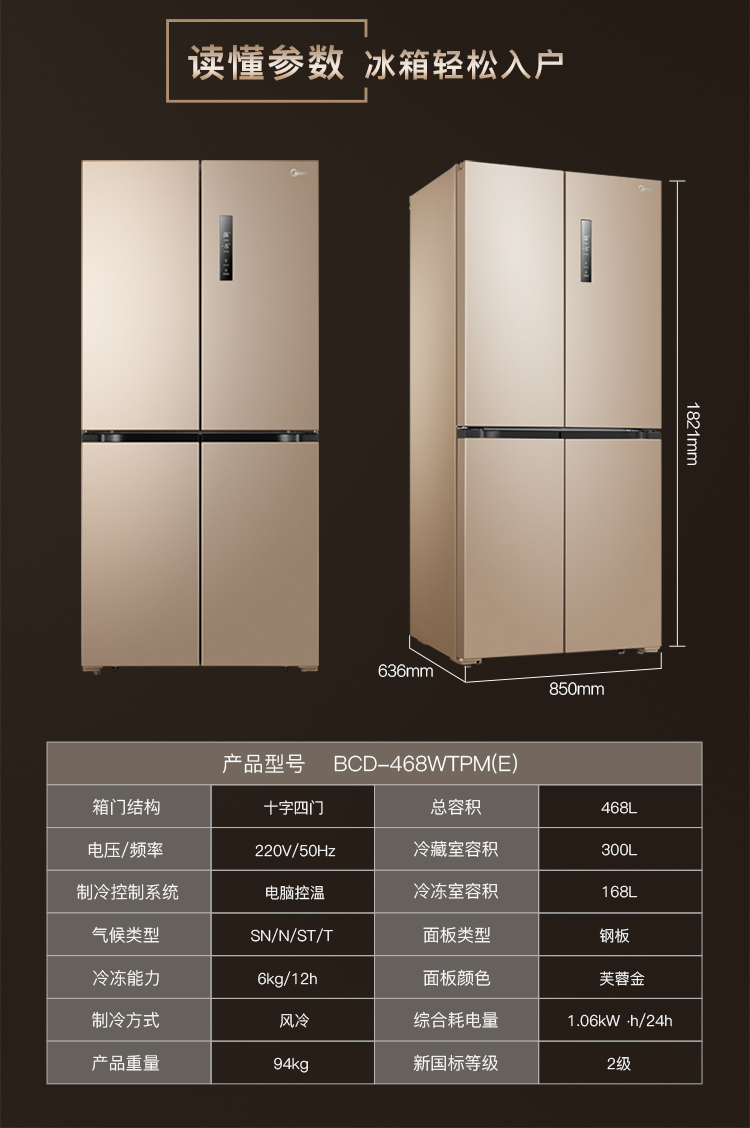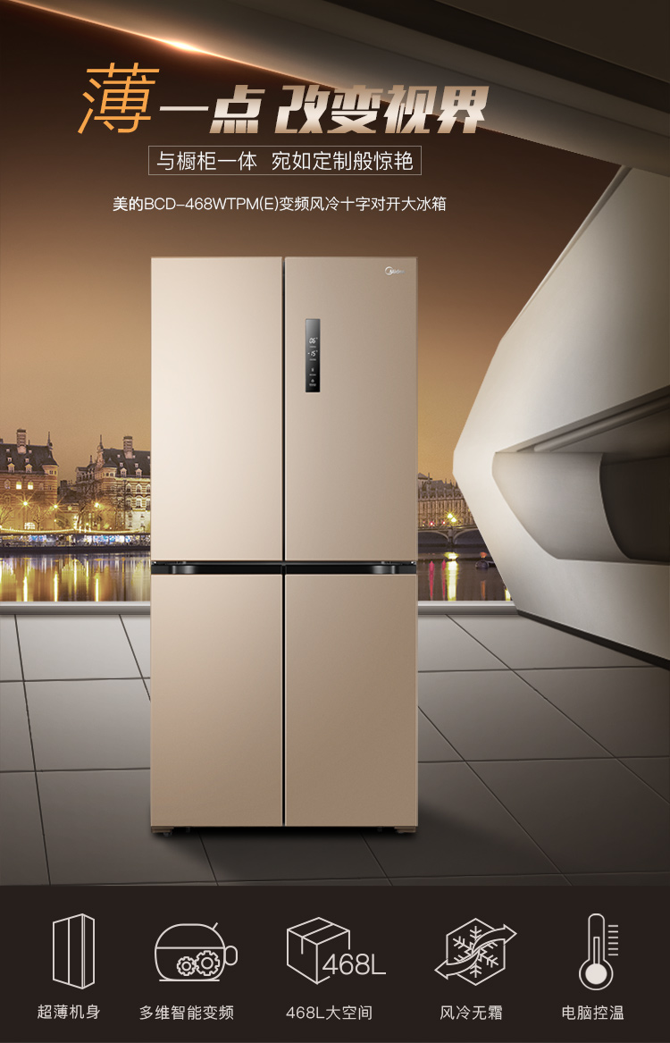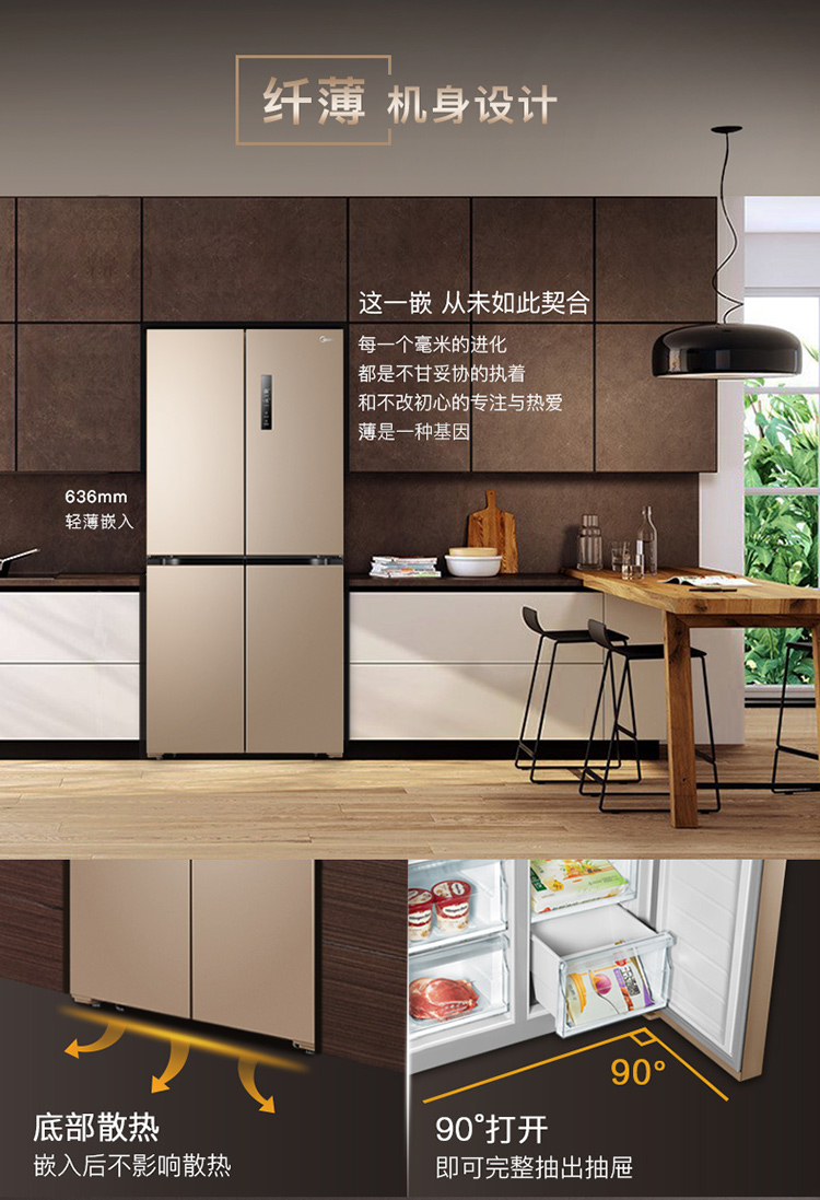 【S】【Midea/美的电冰箱芙蓉金】【WSCMDB0014】 468升 多维智能双变频十字对开多门冰箱 63.6cm薄身 风冷无霜 电脑控温