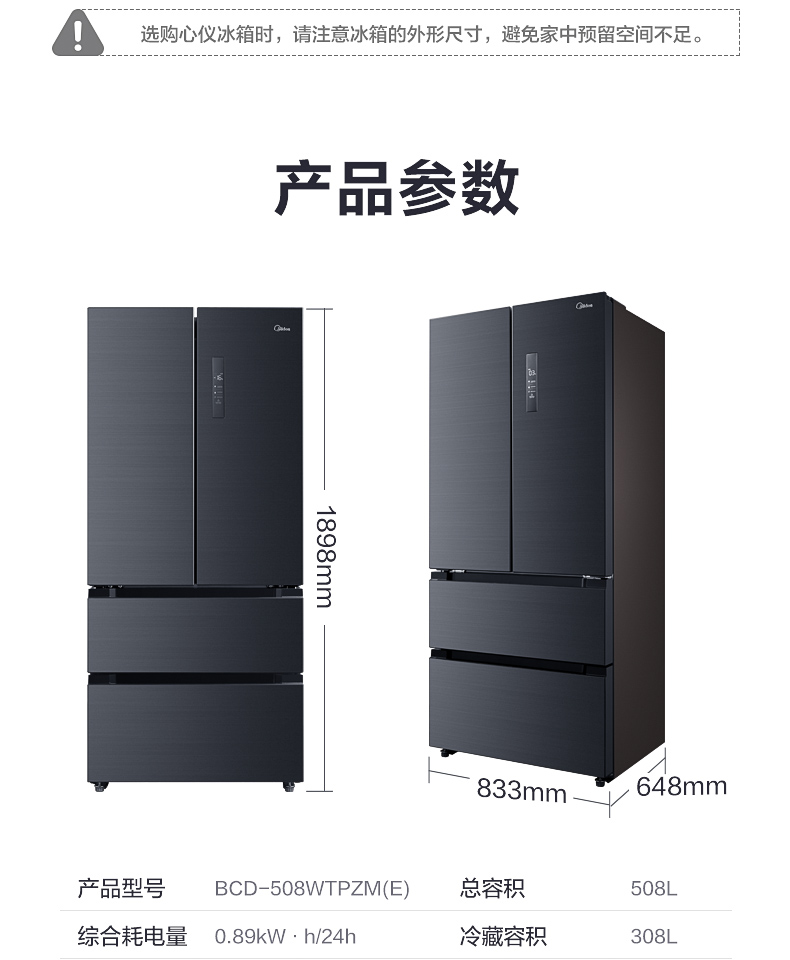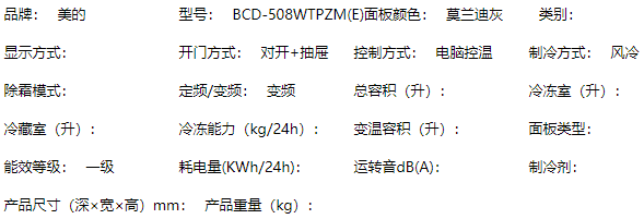 【S】【美的电冰箱】508升智能保鲜19分钟急速净味