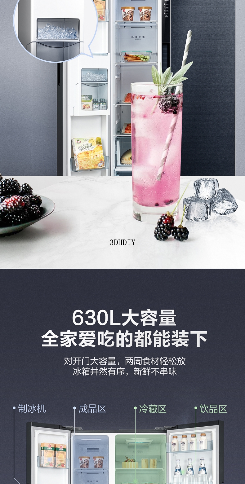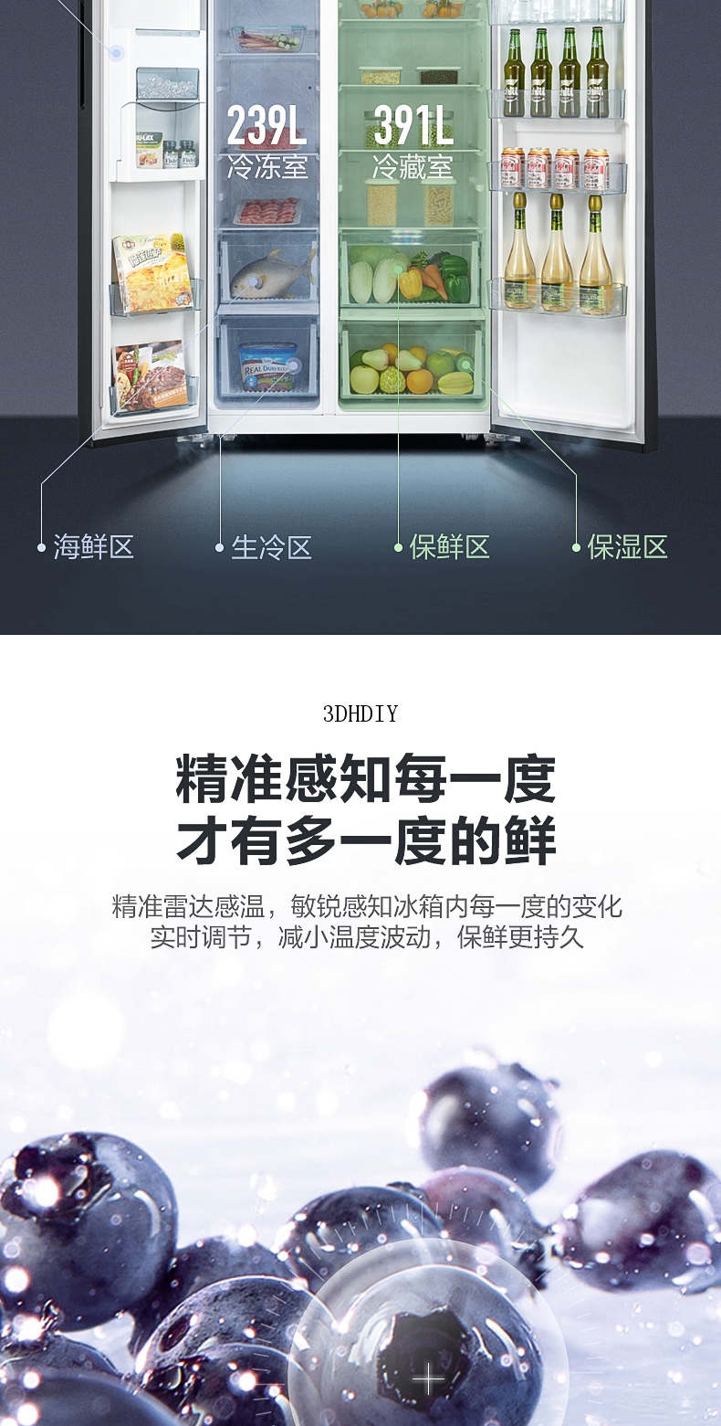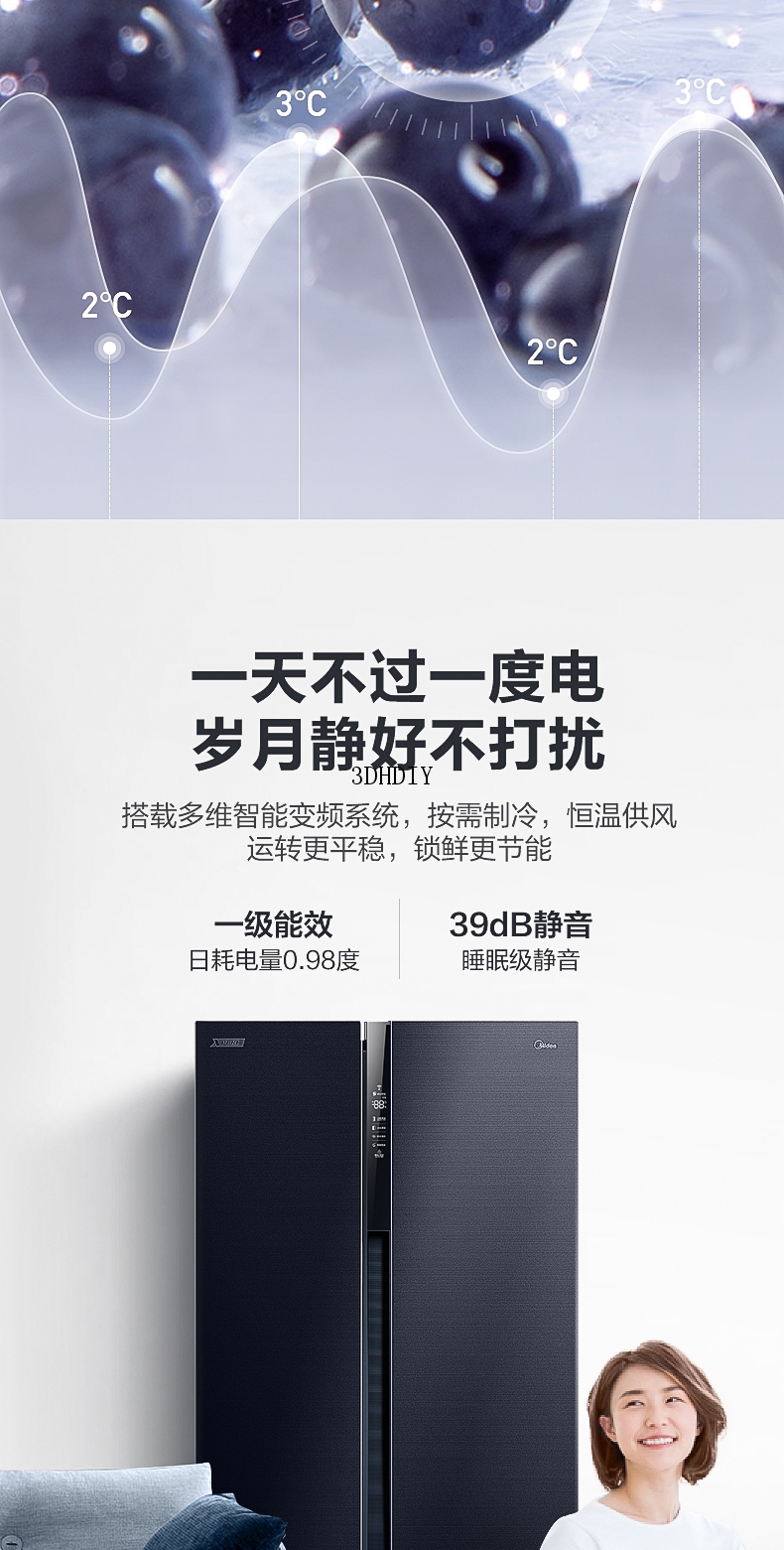 【S】【美的电冰箱 】双开门冰箱 对开门家用无霜节能变频
