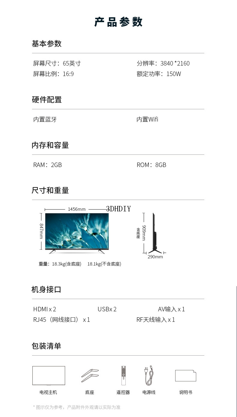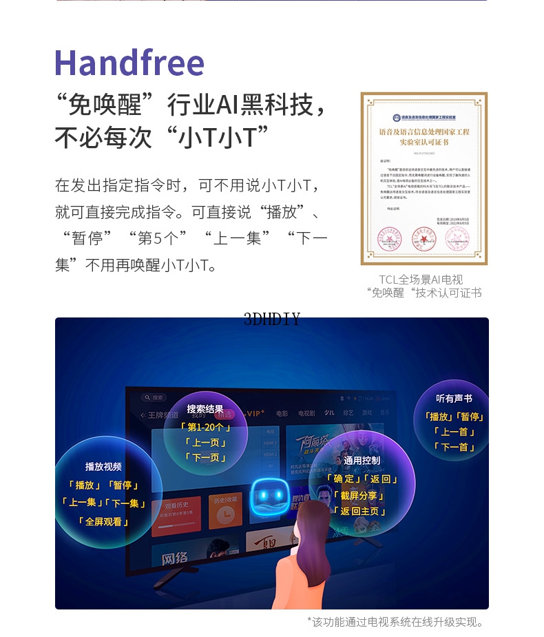 【H】TCL电视 65英寸 声控AI全面屏4K超清液晶平板网络智能电视