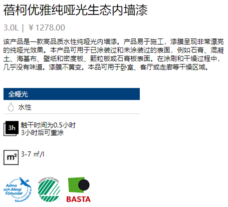 (室内墙漆)蓓柯优雅纯哑光生态内墙漆