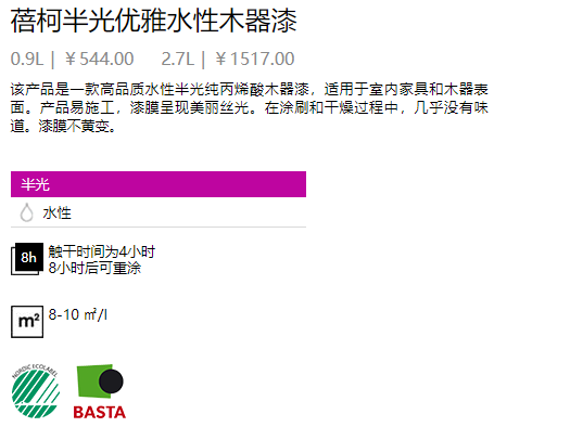 (室内木器漆)蓓柯半光优雅水性木器漆