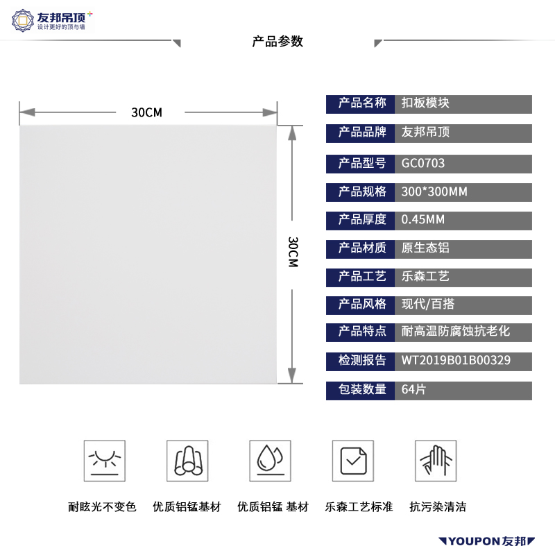 友邦集成吊顶 扣板模块GC0703 辊涂平板/现代/百搭风格(整箱)