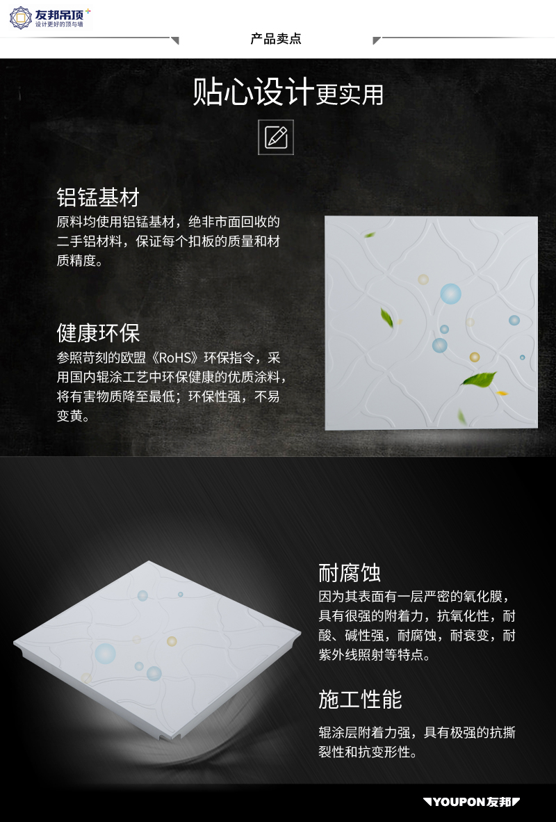 友邦集成吊顶 扣板模块NW1601 单色滚涂/现代/百搭风格(整箱)