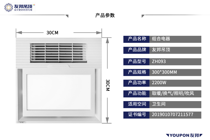 友邦集成吊顶 组合电器ZH093 (整箱)