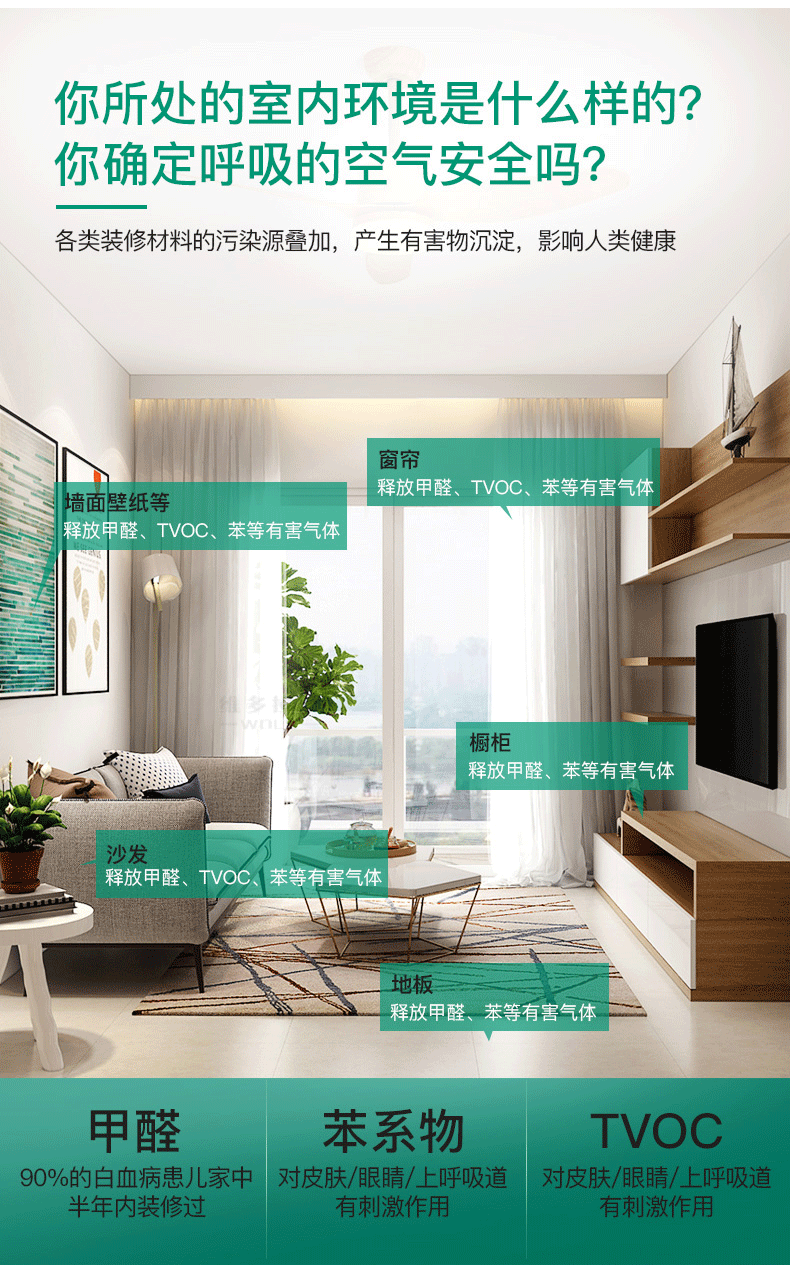 室内除甲醛.苯.氨.TVOC等有害物质、除味、杀菌.防霉(套餐)