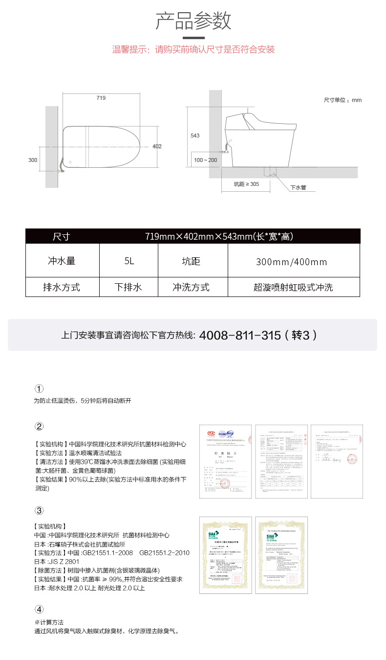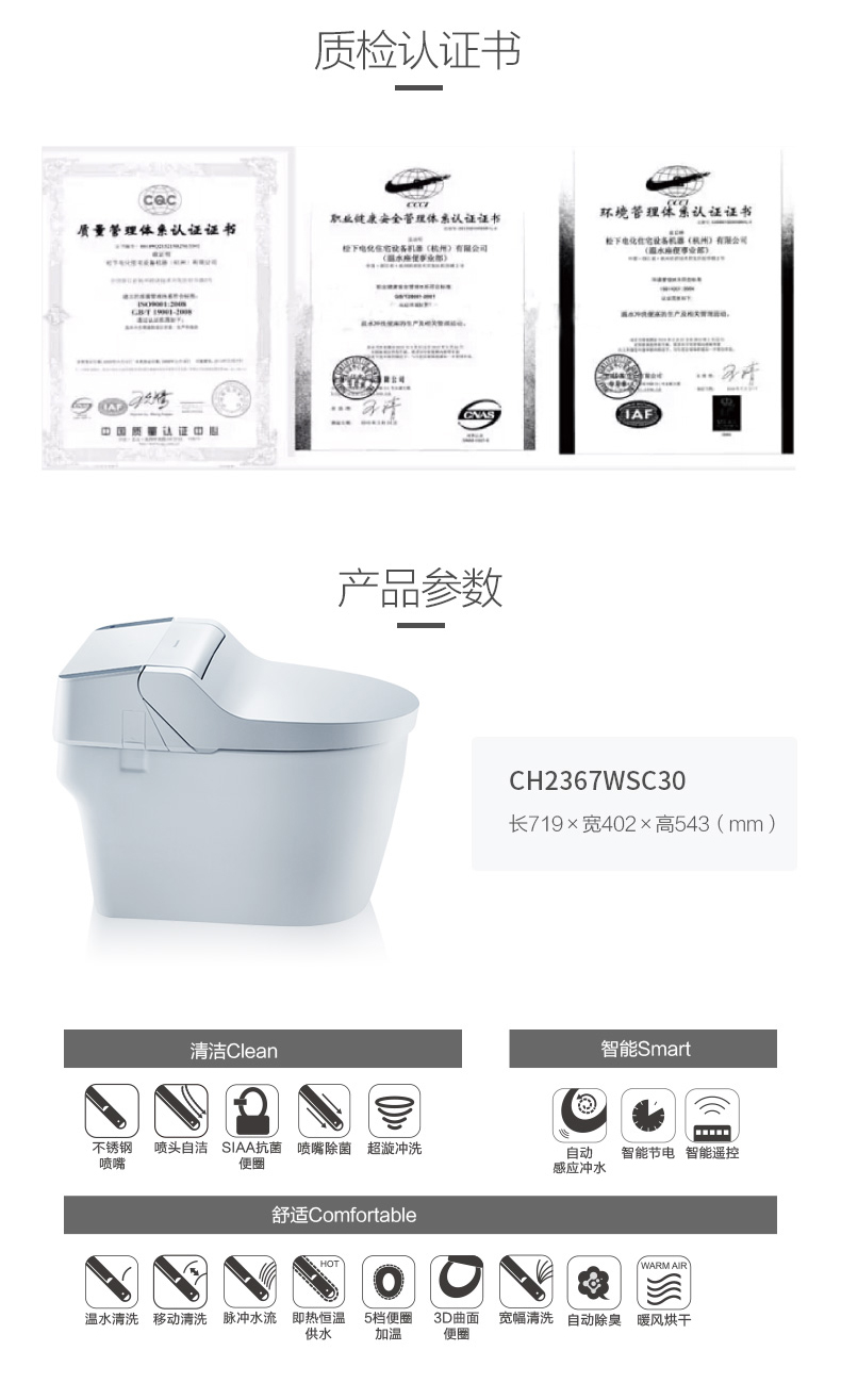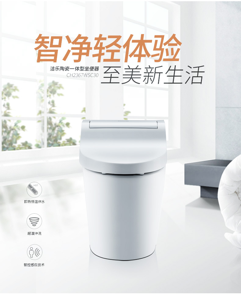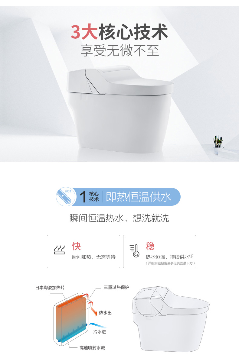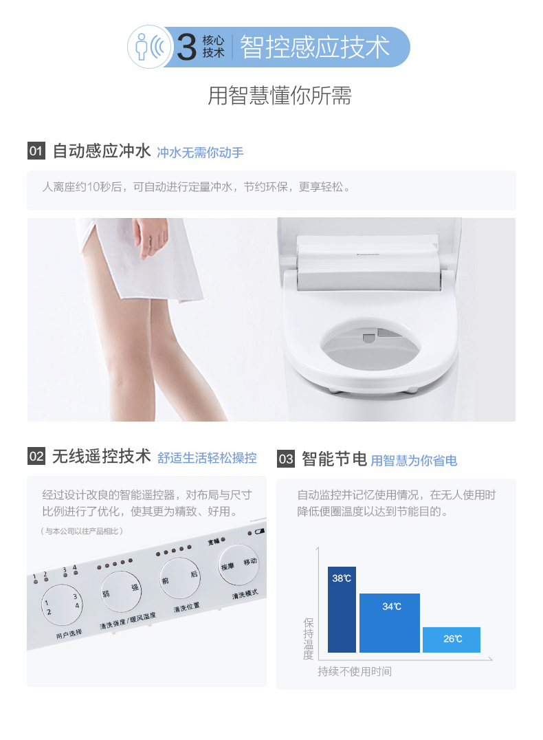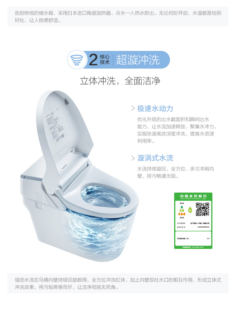 松下智能一体坐便器虹吸式自动冲洗感应冲水即热加热马桶盖