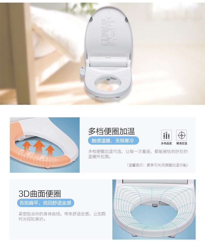 松下(Panasonic) 洁身器日电牌子电子坐便盖 纳诺怡nanoe除菌 遥控控制 自动开闭