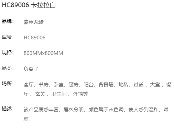 豪臣负离子瓷砖 800*800 卡拉拉白