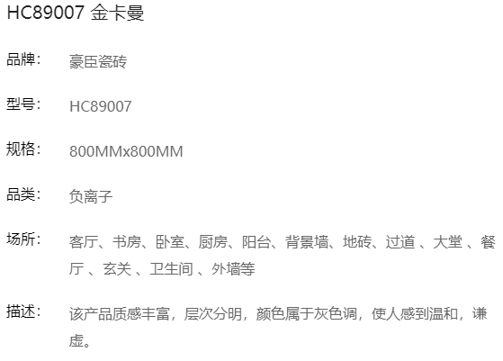 豪臣负离子瓷砖 800*800 金卡曼