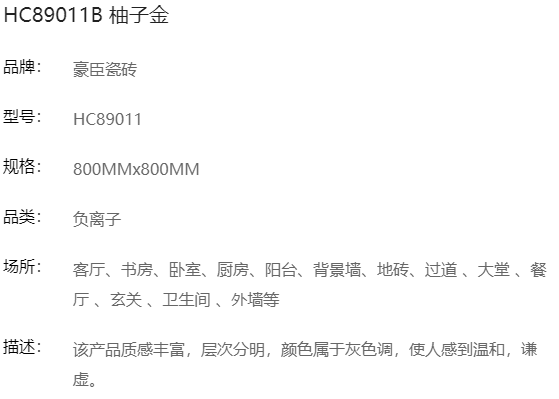 豪臣负离子瓷砖 800*800 柚子金