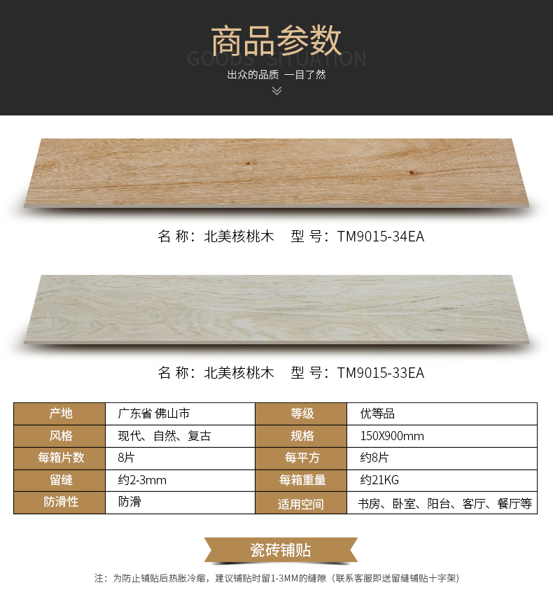 鹰牌 木纹砖150*900(北美核桃木)