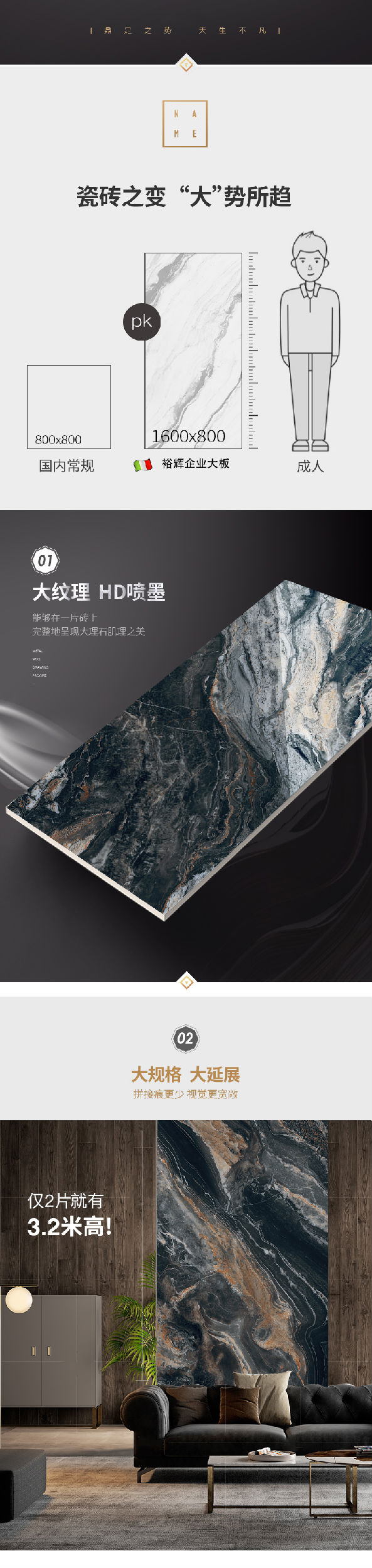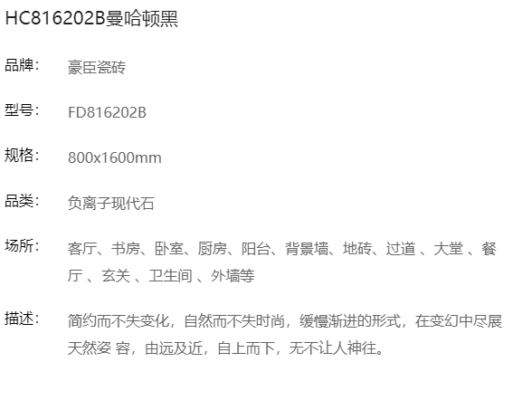 豪臣负离子瓷砖 800*1600 曼哈顿黑