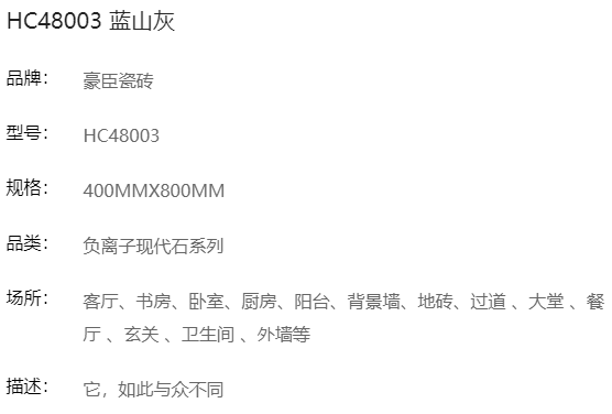 豪臣负离子瓷砖 400*800 蓝山灰