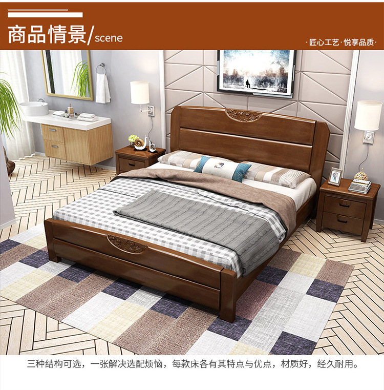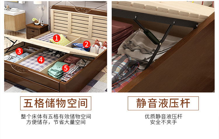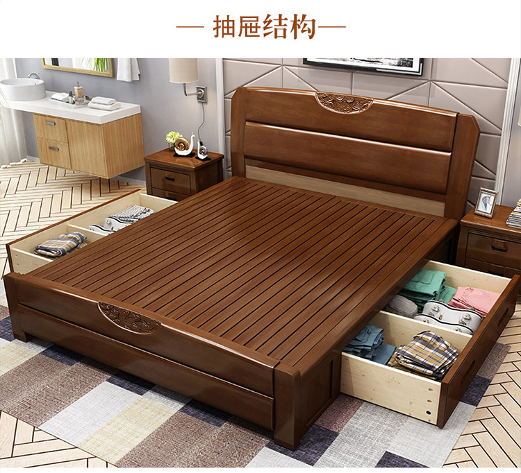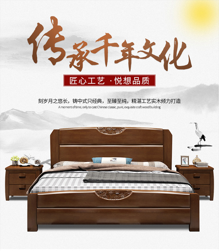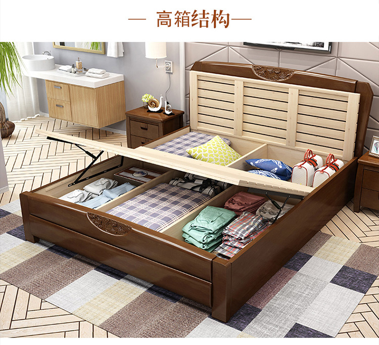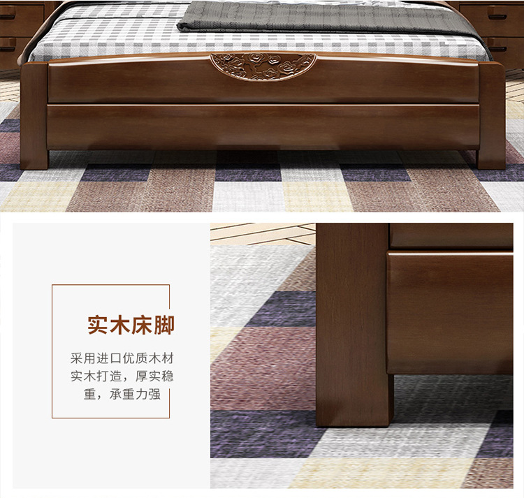 盛世东方新中式主卧家具橡胶木实木床1.51.8米单双人床酒店厂家直销储物