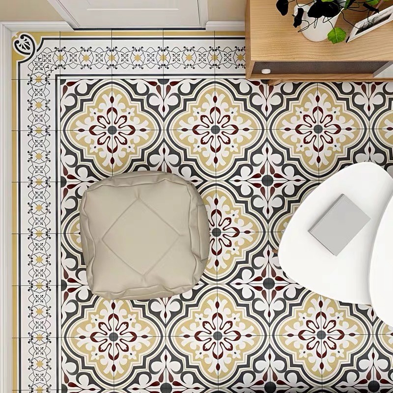 瓷砖拼花民宿酒店院子浴室老上海复古风格黄色花砖